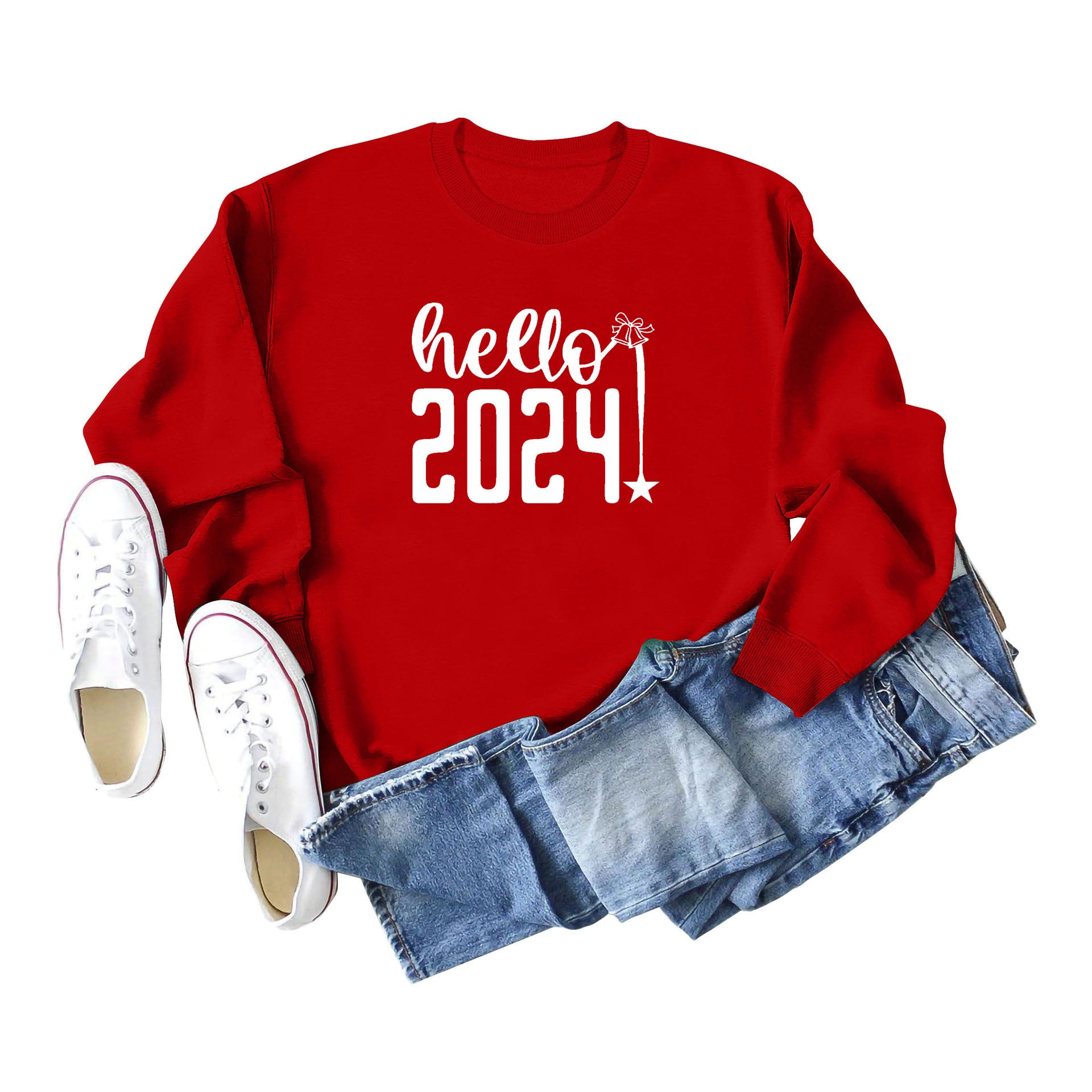 Women Loose Casual 2024 Letter Print Round Neck Long Sleeve Sweatshirt
