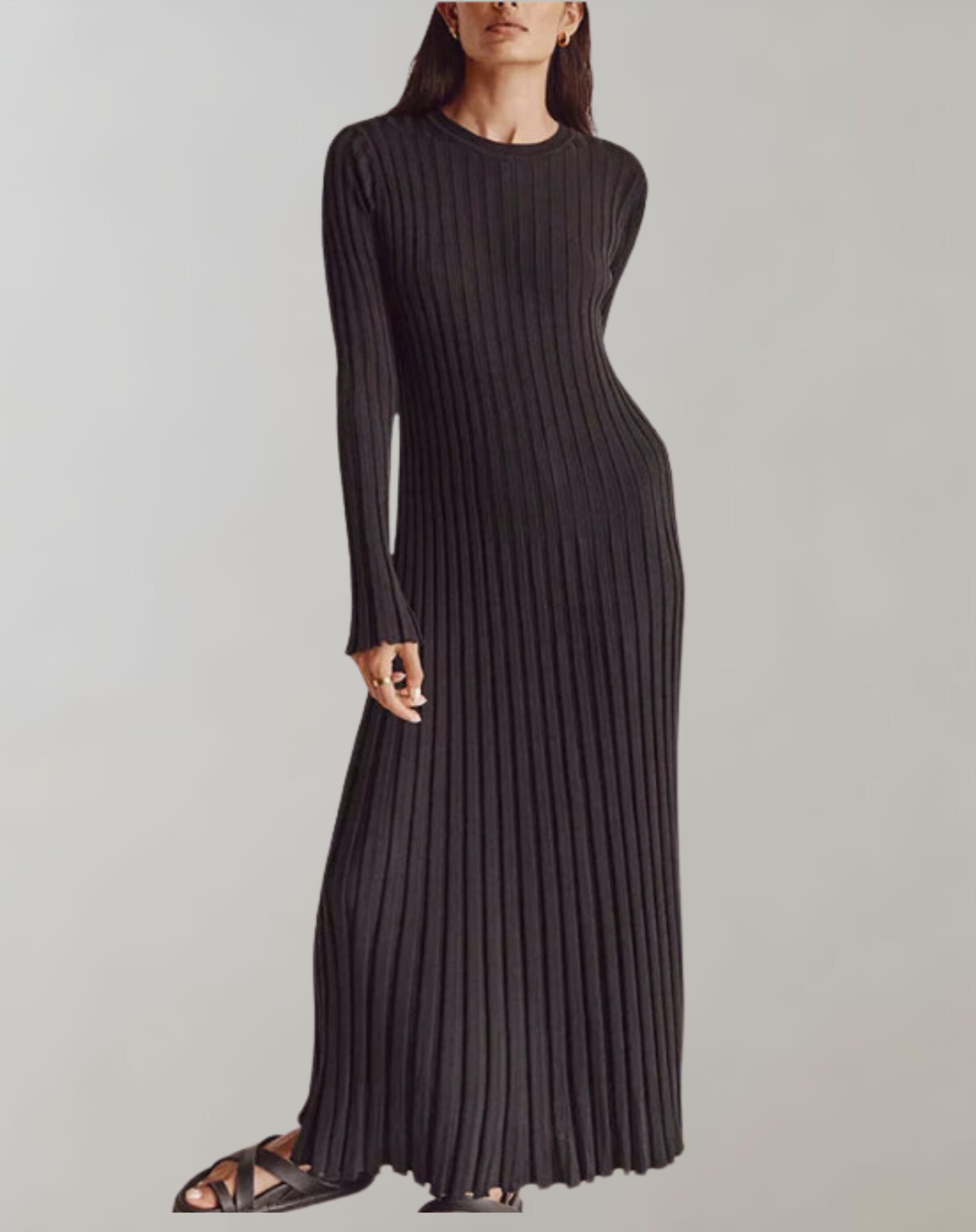 Women’s Knitted Long Sleeve Round Neck Midi Dress