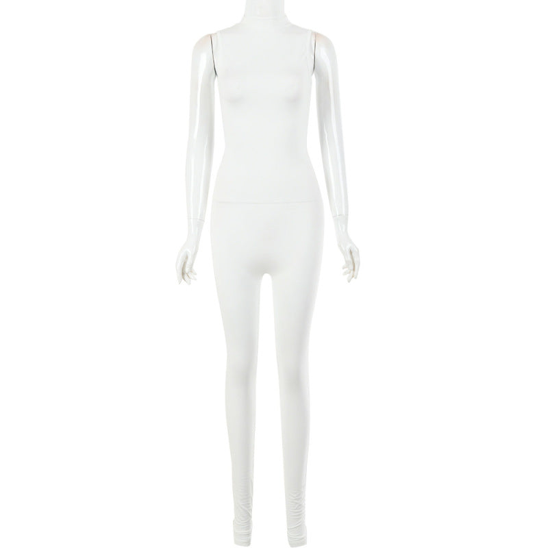 Women Solid Color Sleeveless Tank Top Slim Casual Jumpsuit
