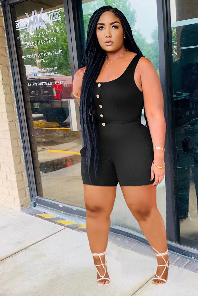 Women Solid Color Splicing Casual Sleeveless Belt Rompers