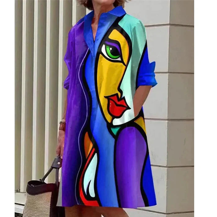 This midi dress features a turn-up collar and a floral print design. Its relaxed fit and lightweight fabric make it suitable for spring and summer wear, ideal for casual outings and social events.